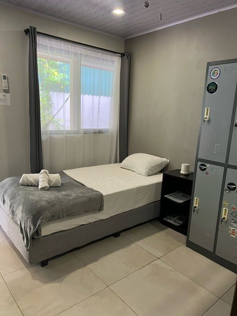 This room is 163 square feet or 15 square meters, is a private room with a private bathroom, it has 1 queen bed and 1 twin bed (can accommodate up to 3 people), and has a closet for storage and to hang clothing. Private backyard patio sitting area. Rooms 3, 4, and 5 have outdoor patio seating in the back which can be private if the gates are kept closed or can be opened for a shared space. Beach towels available with a small deposit. This rooms has access to a fully equipped, communal kitchen, for all of your cooking and/or food storage needs.